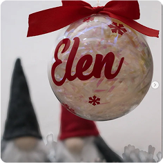 Bola de Navidad con nombre y diseño festivo. Personalización artesanal.